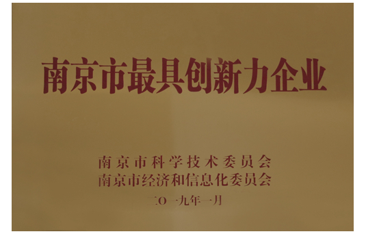 2018年獲“南京市最具創新力企業”稱號