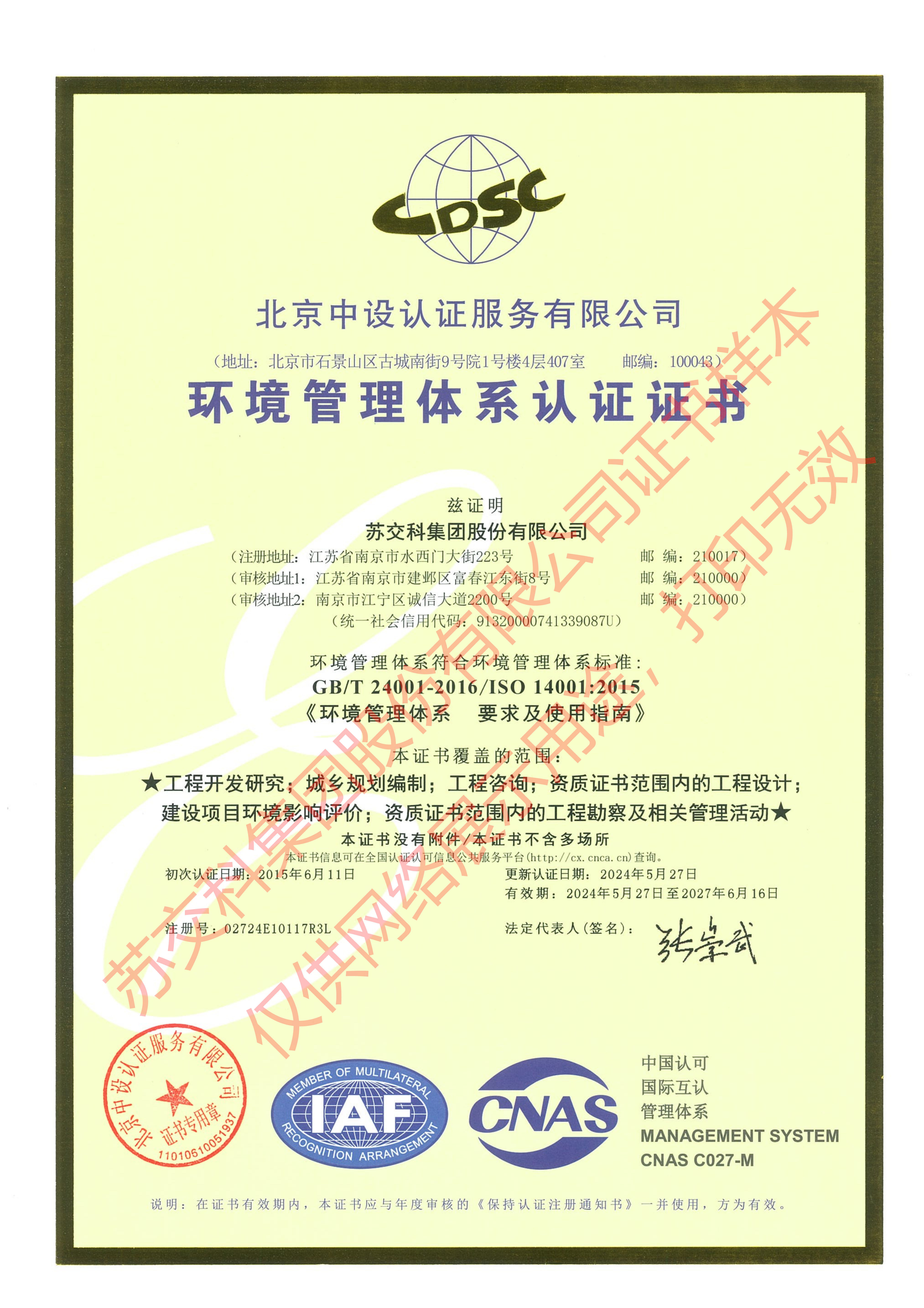 環(huán)境管理體系認(rèn)證證書CN