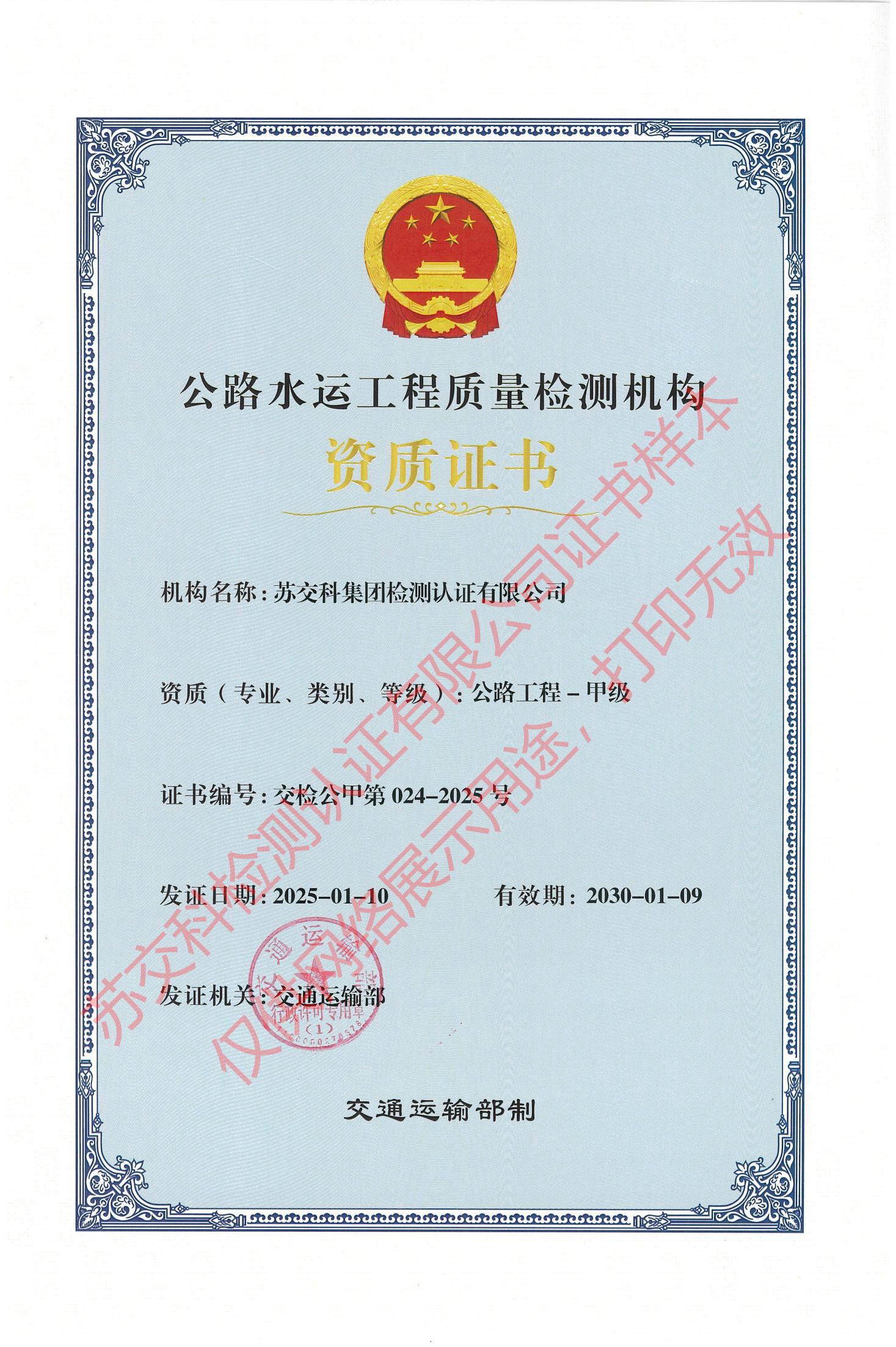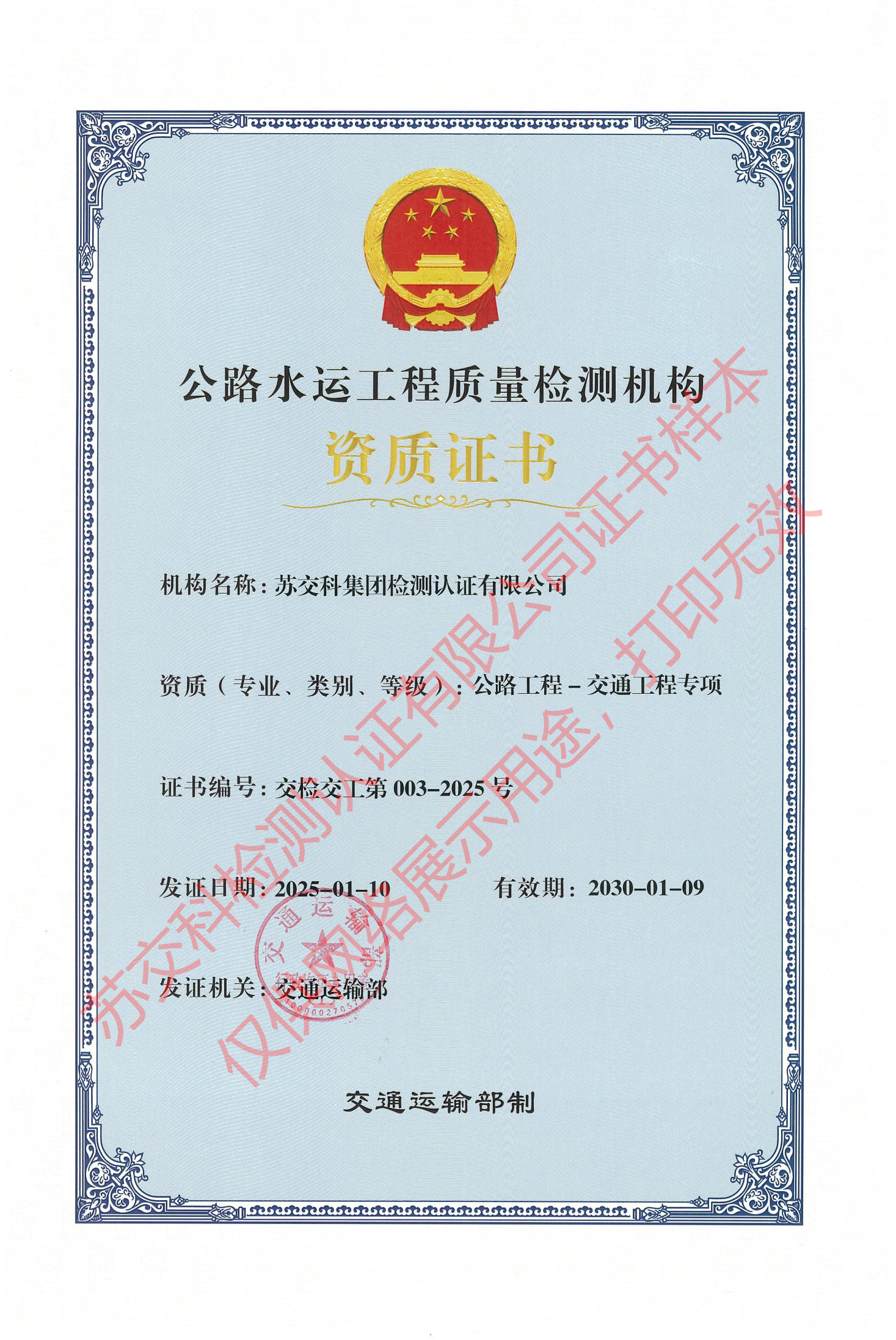 蘇交科檢測認(rèn)證水運材料甲級
