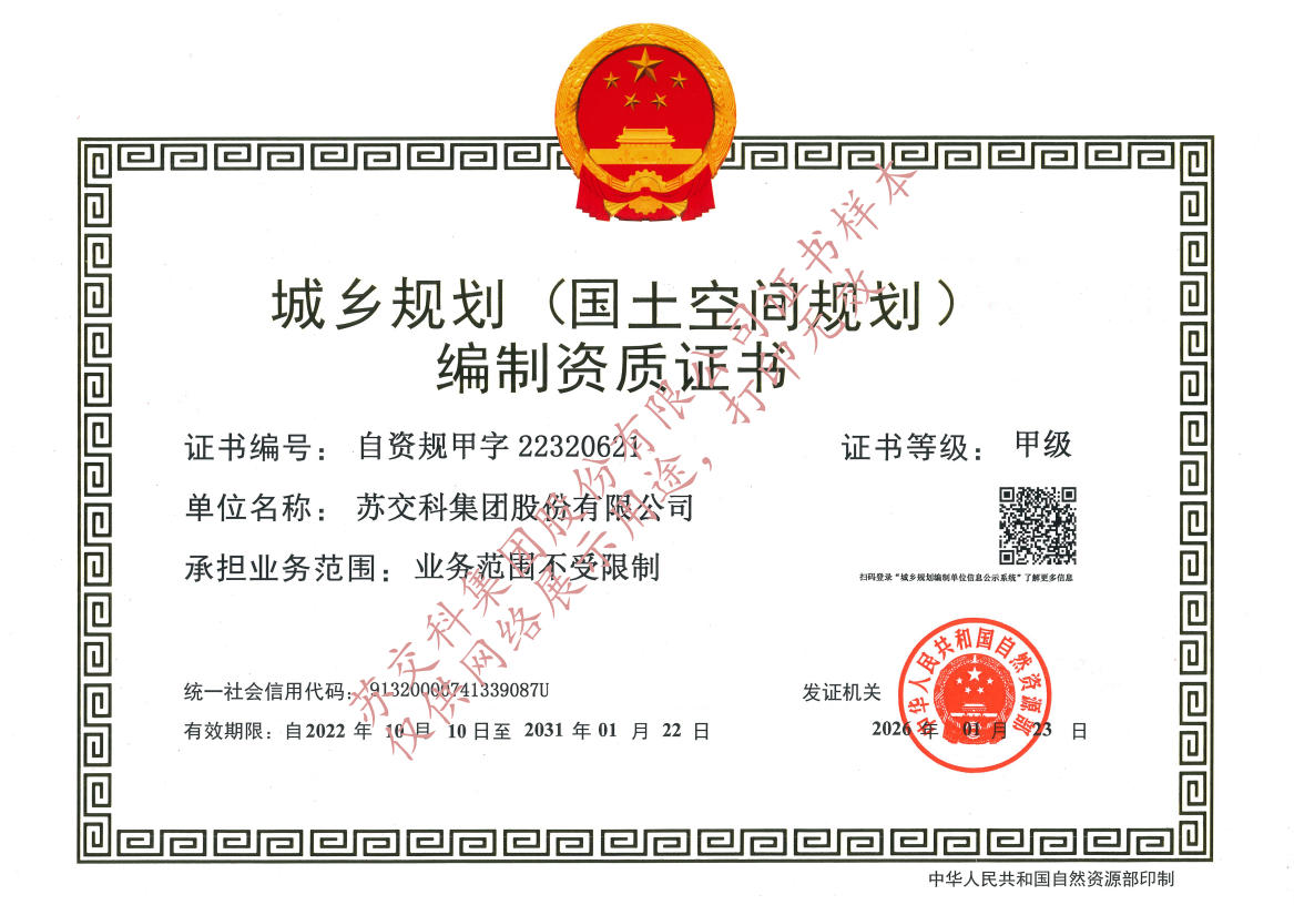 蘇交科擁有工程行業(yè)各領(lǐng)域甲級資質(zhì),包括城鄉(xiāng)規(guī)劃甲級資質(zhì);工程咨詢綜合甲級資質(zhì);工程咨詢專業(yè)甲級資質(zhì)(公路、生態(tài)建設(shè)和環(huán)境工程、水文地質(zhì)、工程測量、巖土工程、城市規(guī)劃、鐵路、城市軌道交通、港口河海工程、市政公用工程(市政交通、給排水)、水利工程、旅游工程);工程設(shè)計綜合甲級資質(zhì);工程勘察綜合類甲級資質(zhì);測繪甲級資質(zhì);公路工程和市政公用工程總承包一級資質(zhì);公路工程、水運工程、市政公用工程監(jiān)理甲級資質(zhì);公路工程甲級、公路工程交通工程專項、水運工程材料甲級和水運工程結(jié)構(gòu)甲級試驗檢測資質(zhì)。